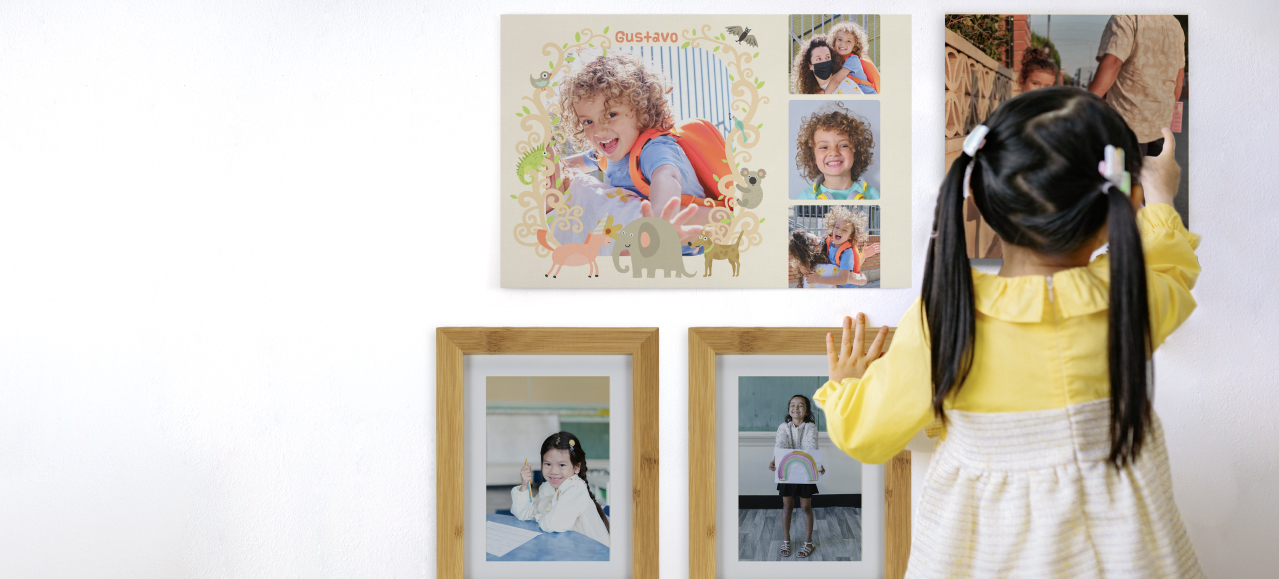Dá vida às paredes brancas de tua casa e preenche-as com Quadros ou Telas personalizadas com as fotos do regresso às aulas dos teus filhos e o respetivo ano letivo. Podes optar também por Molduras para dar mais personalidade aos armários e prateleiras de tua casa.